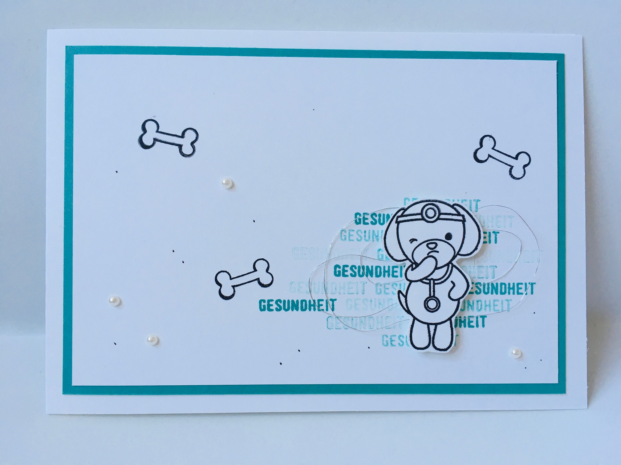 In liebevoller Handarbeit hergestellte Karte, mit der man einem Hund, einer Katze oder einem Pferd eine kleine Nachricht und "Gute Besserung" wünschen kann!